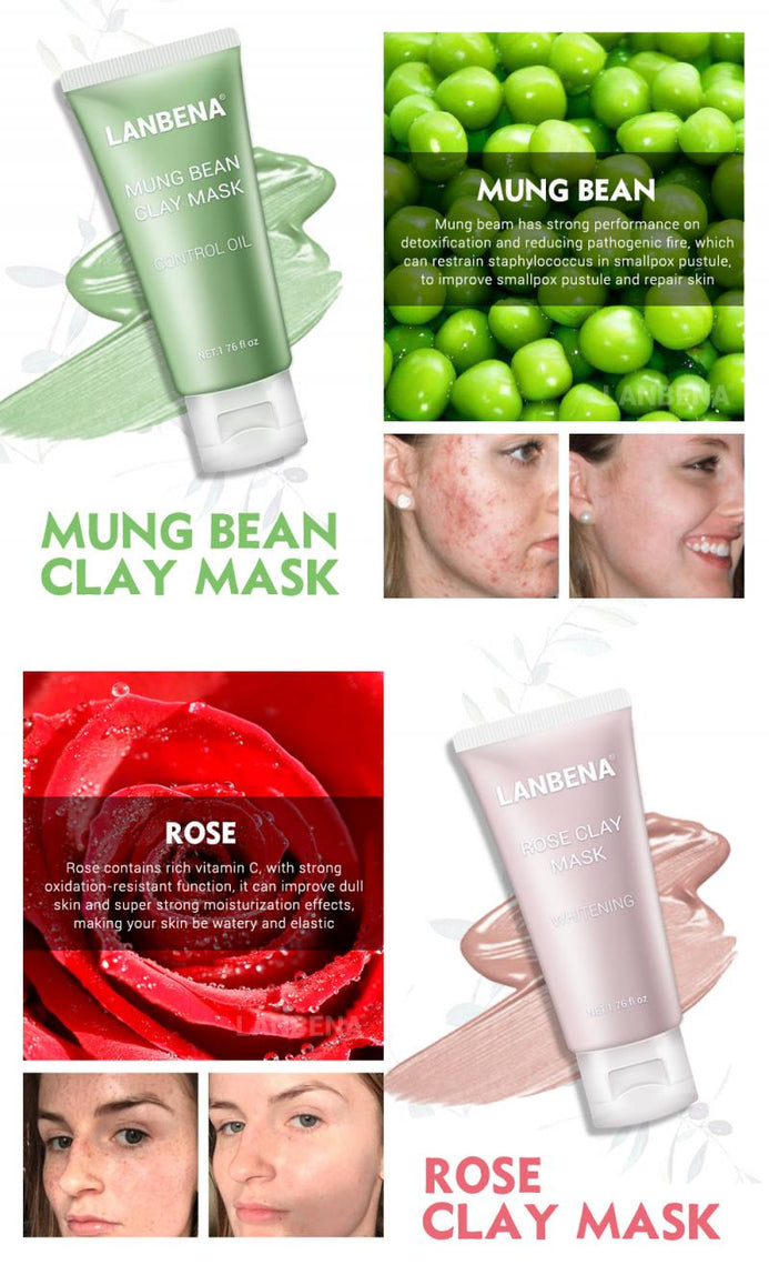 Rich in natural mung bean extract combined with a variety of plant extracts, the LANBENA Mung Bean Clay Mask has good grooming effect on acne and other issues play a regulatory role, also can reduce acne marks and nourish the skin. The light and thin mineral clay with deep cleaning and oil controlling function can effectively clean the pores, remove grease and control oil.