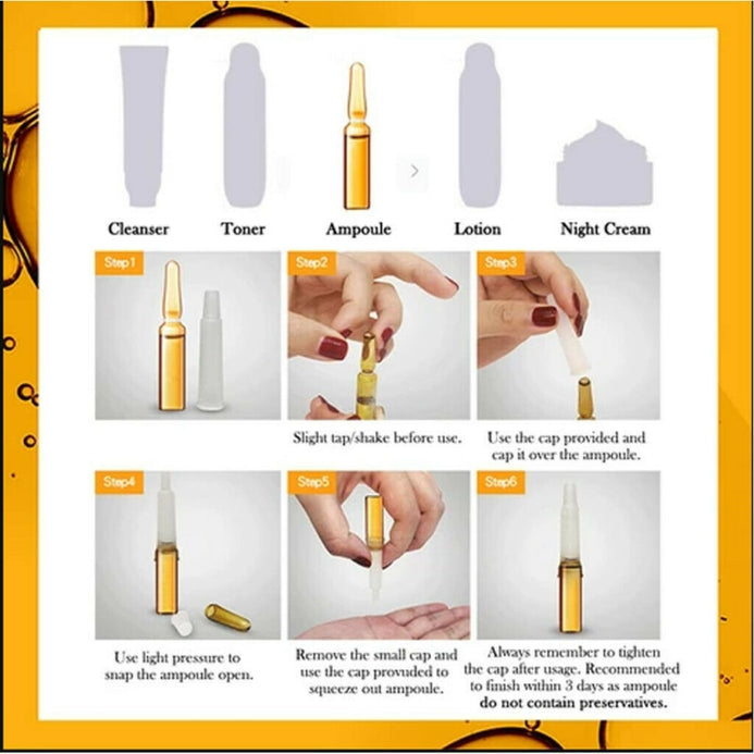 Usage: Apply 3-4 drops on cleansed face after toner, before skin care product that have thicker texture like lotion, moisturizer and facial oil.