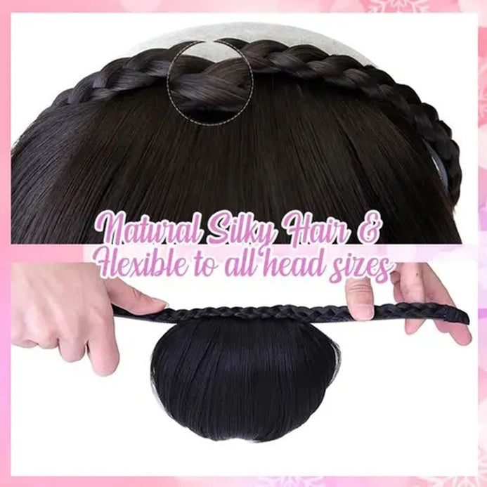 Instant Braided Hair Bangs Extensions BLENDS with your NATURAL HAIR.